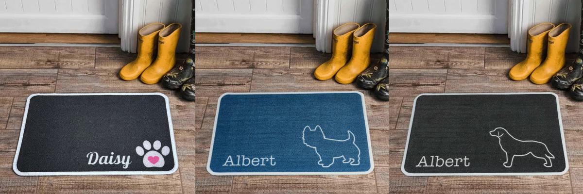 range of personalised pet food mats. Designed for dogs, these custom feeding mats help keep floors clean while showing off your pet’s name and personality. With seasonal, breed-specific, and fun designs to choose from, each mat is absorbent, non-slip, and easy to clean. Please allow 3–5 working days for dispatch on all personalised items.