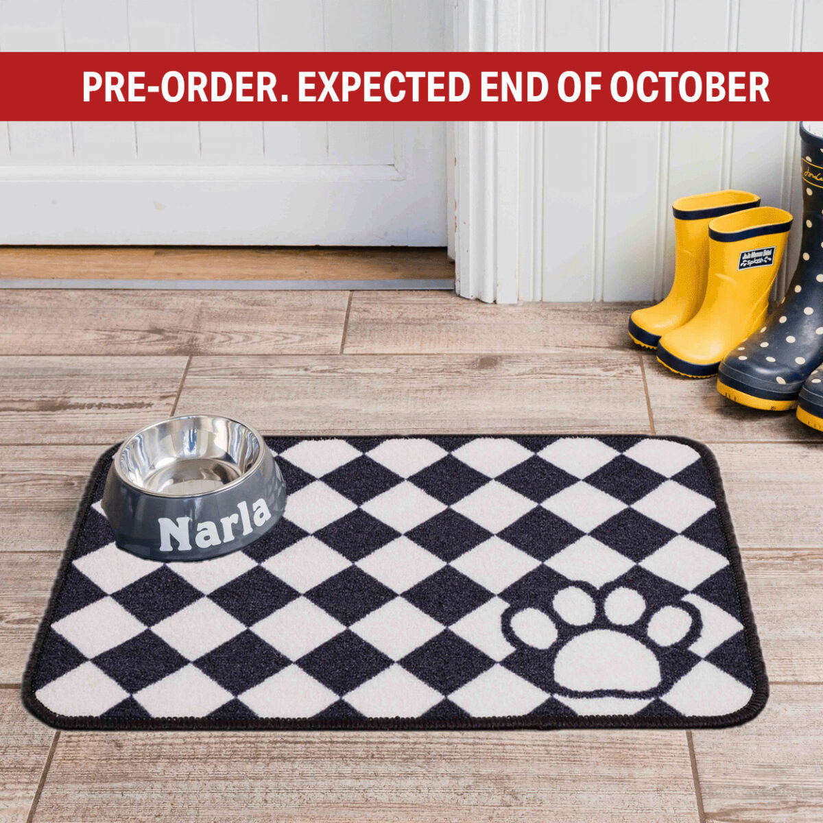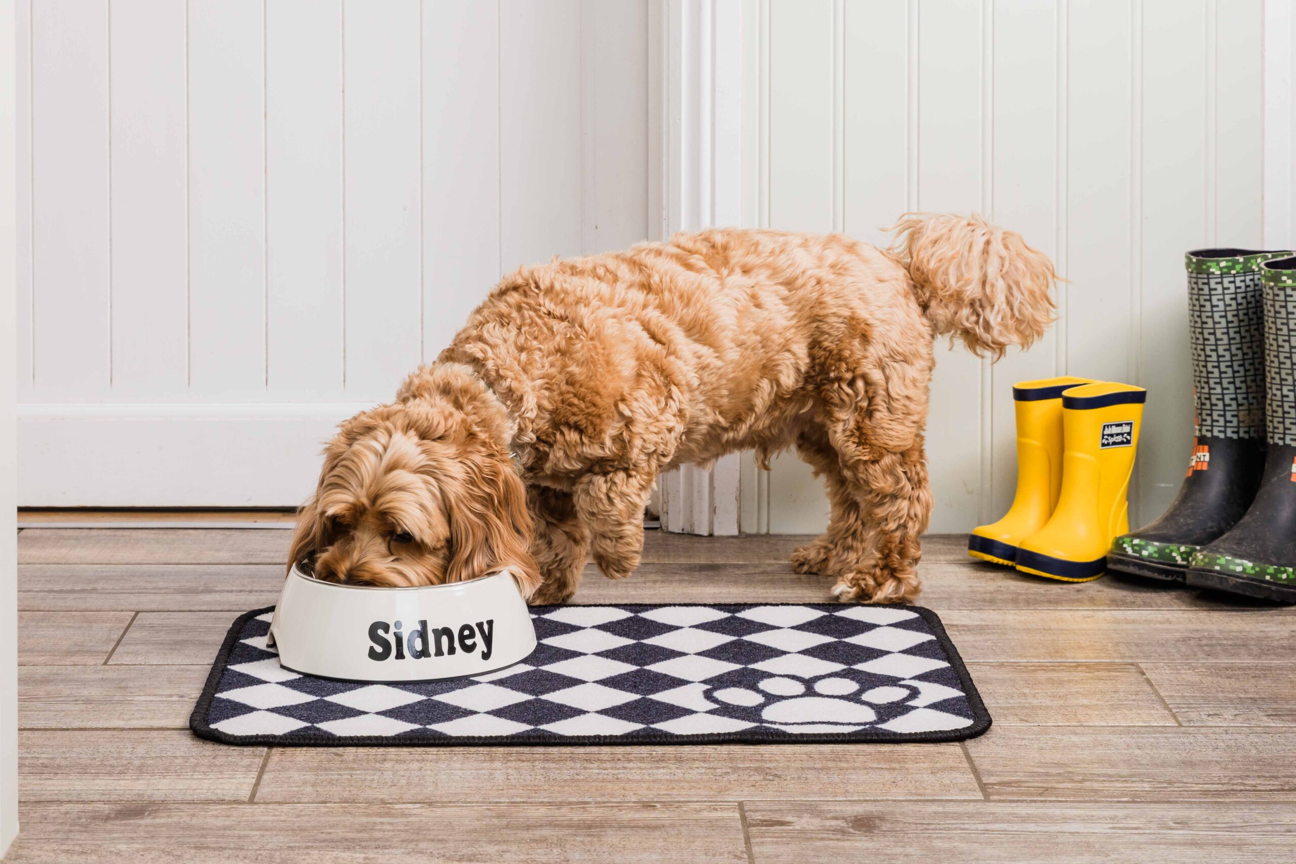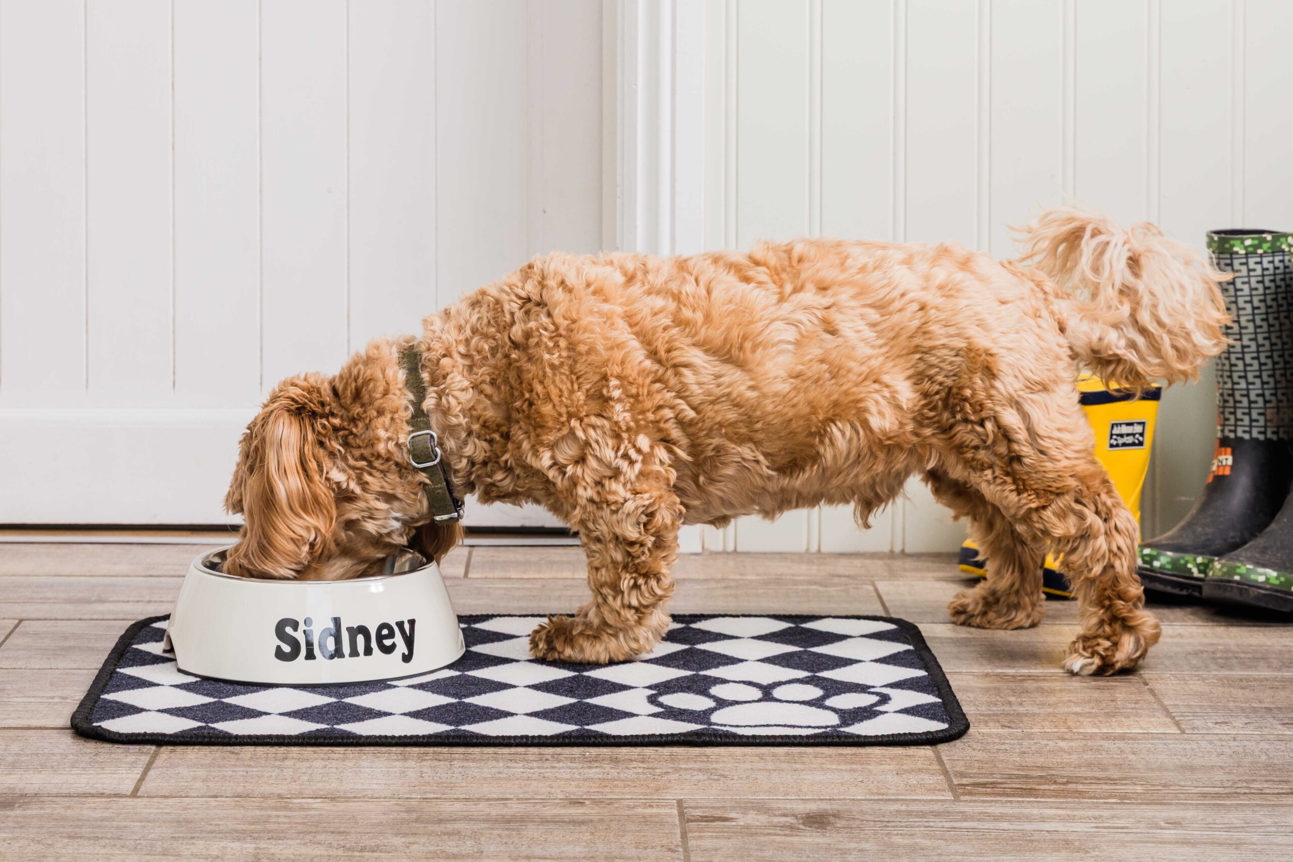 Our Dinner Mate food mat makes the perfect resting place for your pet’s food and water bowls. Making sure that any spills are absorbed and don’t become ingrained or stain your floor. The rounded corners help keep your mat lying flat and the non slip backing helps reduce movement. Our water absorbent dog feeding mats are machine washable making them easy to clean, free from bacteria and keeping the food area smelling fresh.