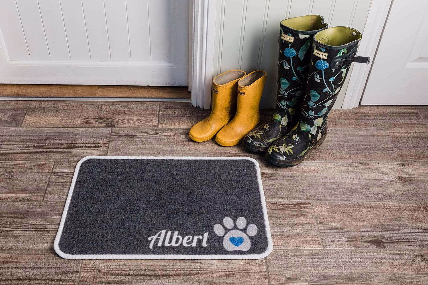 We are excited to launch our exclusive range of personalised food mats! Let your pooch dine in style with their very own printed mat. Choose from our range of styles and colour combinations to find the perfect match for your pet. Our absorbent food mats make a perfect resting place for your pet’s food and water bowls and make sure that any spills are absorbed and do not become ingrained or stain your floor the rounded corners help keep your mat lying flat and the grippe surface helps reduce movement. As they are machine washable you can eliminate bacterial build-up and keep the pet’s food area smelling fresh.